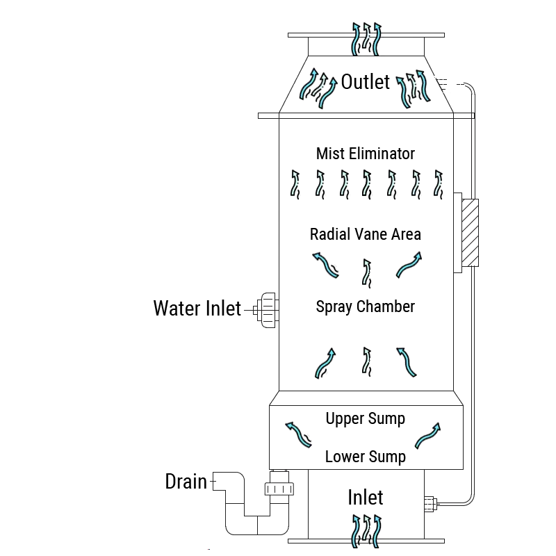 Engineered for efficiency, it features a sophisticated water spray nozzle within the unit’s core that captures fumes as contaminated air flows upward, ensuring thorough particle removal and clean emissions. Enjoy years of reliable, maintenance-free operation, significantly reducing time and effort spent on maintenance. Our scrubber delivers exceptional emission reduction, superior reliability, and stress-free installation, all in a compact and lightweight product.